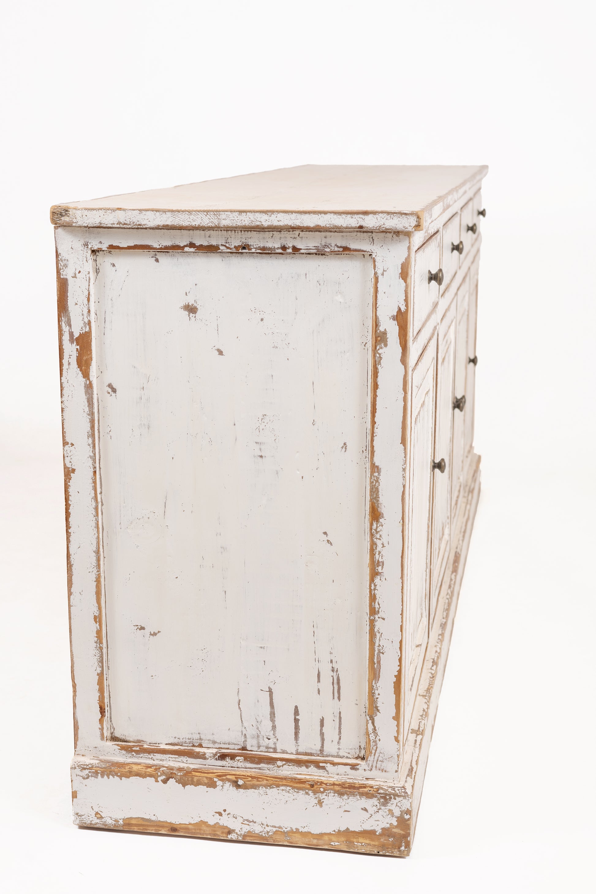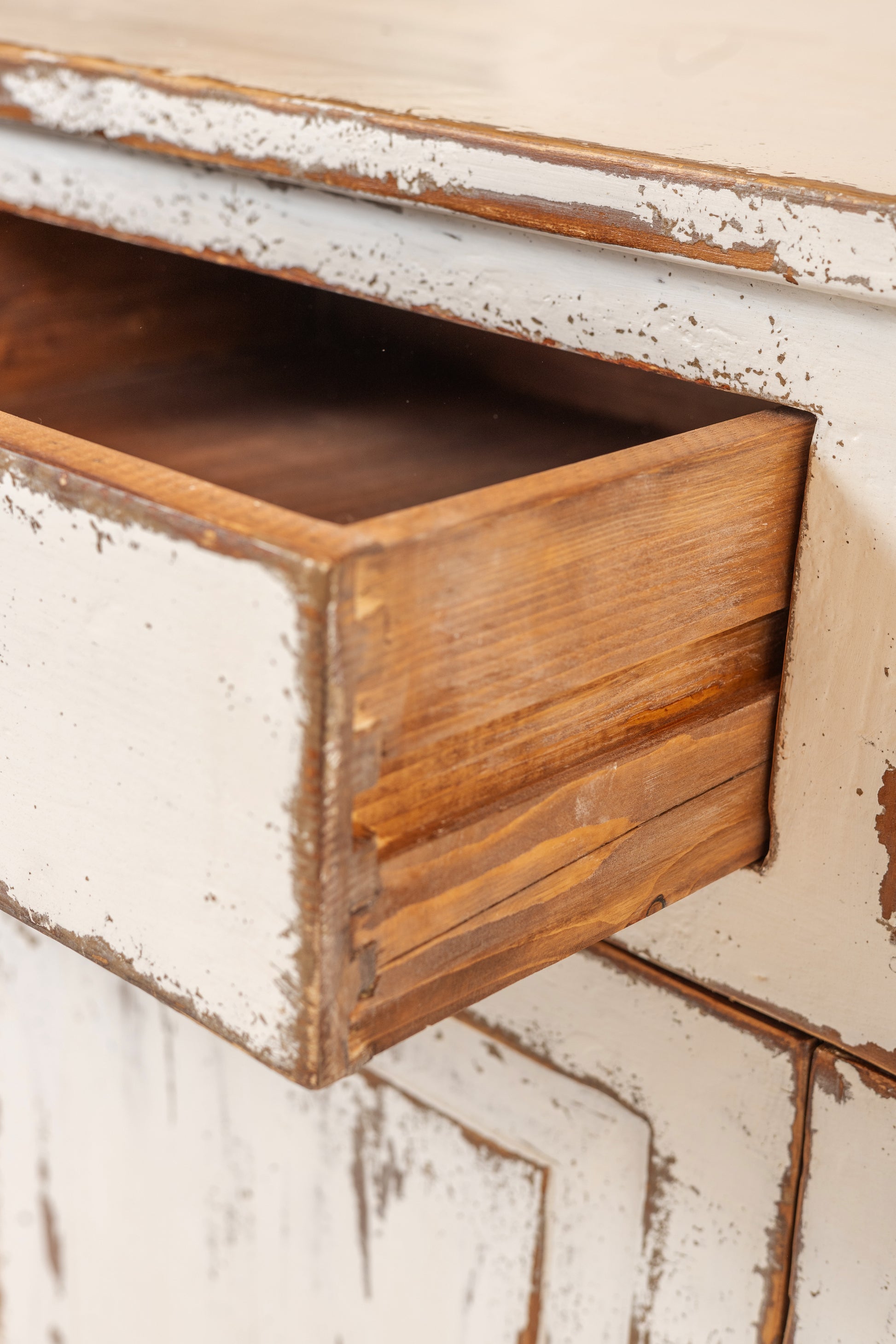 Inspiré des meubles d’autrefois, le buffet Cécile conjugue charme rustique et élégance d’antan. Fabriqué en vieux pin recyclé, il est revalorisé avec un fini blanc antique qui rappelle les maisons de bord de mer, les chalets de campagne ou les fermes familiales.