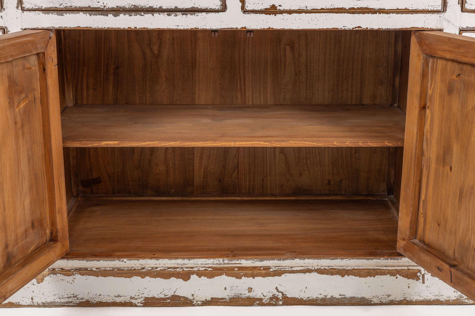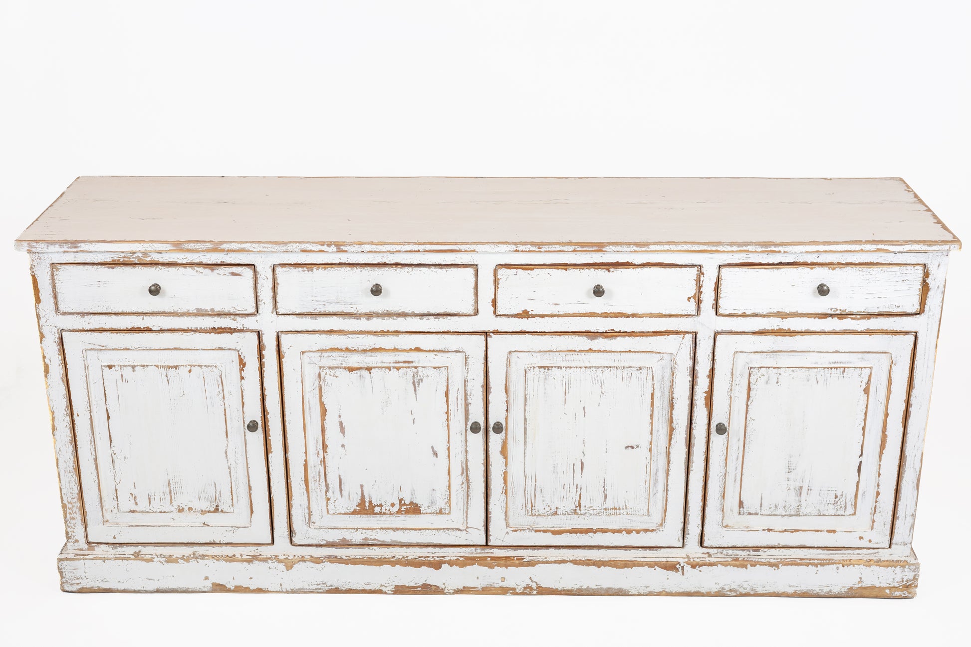 Son allure patinée et ses panneaux soulevés lui confèrent une présence chaleureuse, marquées par l’empreinte du temps. Polyvalent et pratique, il offre un généreux espace de rangement tout en apportant une touche d’authenticité à votre décor.