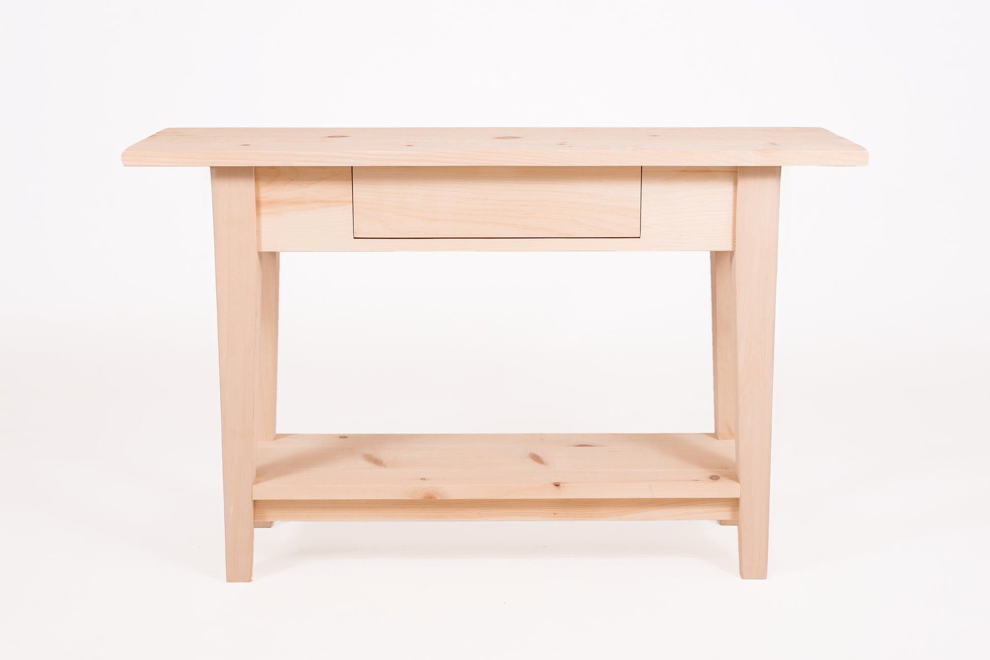 Polyvalente, elle s’intègre aussi bien dans une salle à manger, un corridor, une chambre ou une entrée. Son tiroir ajoute un rangement pratique sans compromettre la légèreté de son design. L’étagère du bas complète l’ensemble, idéale pour accueillir livres, paniers ou objets décoratifs.