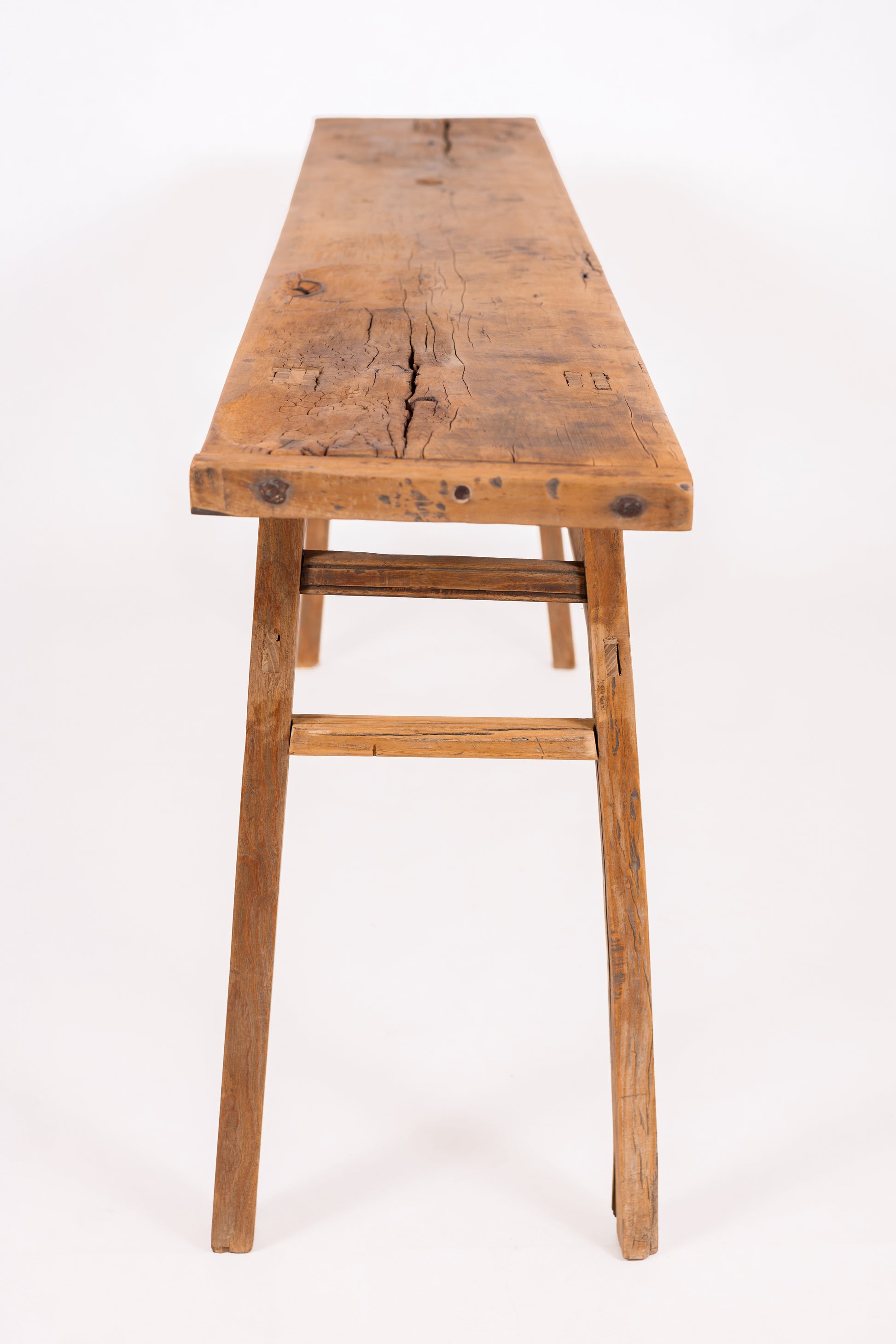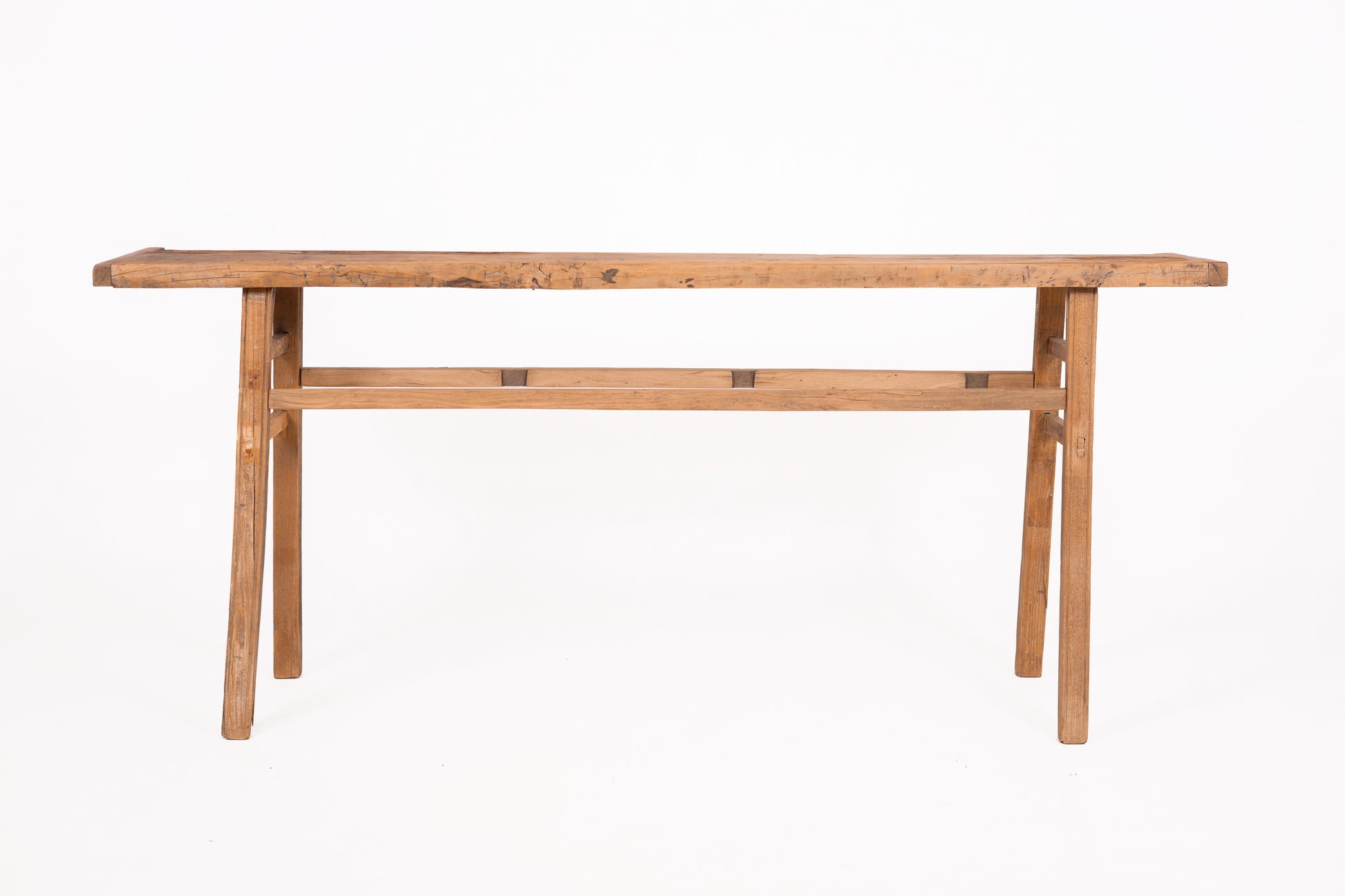La Table console La Casa Blanca est fabriquée en bois recyclé, offrant un cachet unique et authentique. Parfaite derrière un sofa ou comme meuble audio, elle peut également être utilisée dans la salle de bain grâce à sa traverse pratique qui sert de porte serviette.