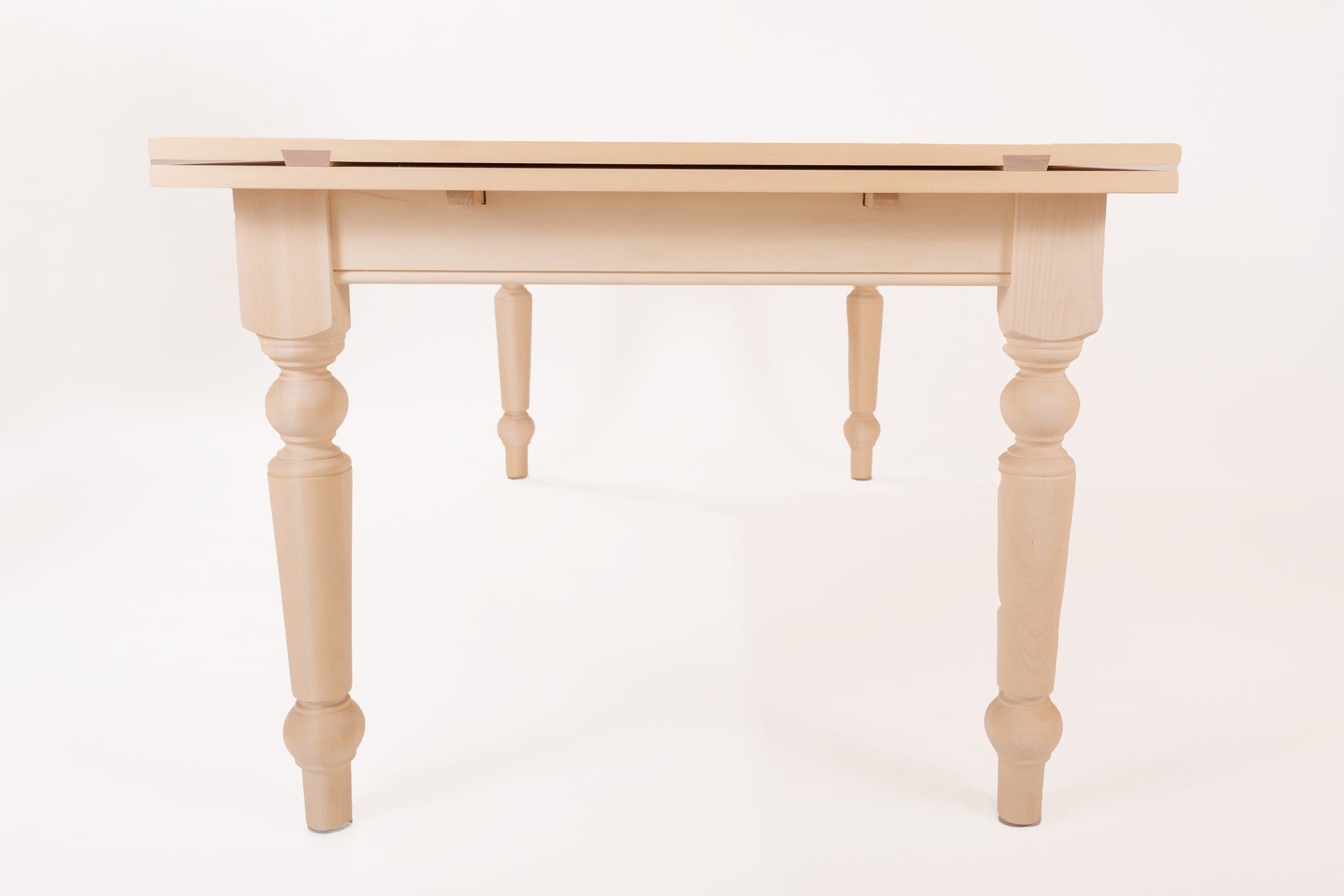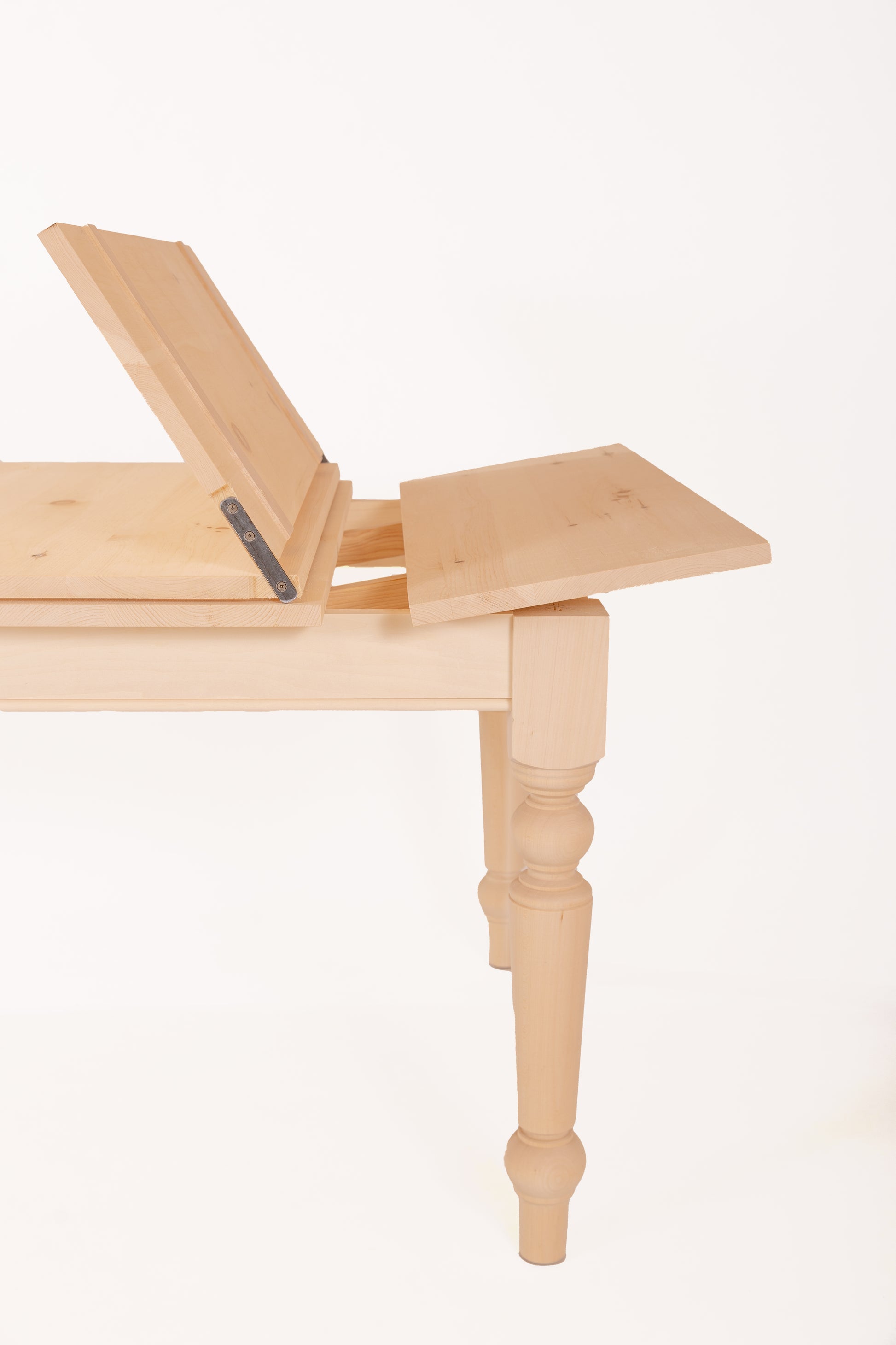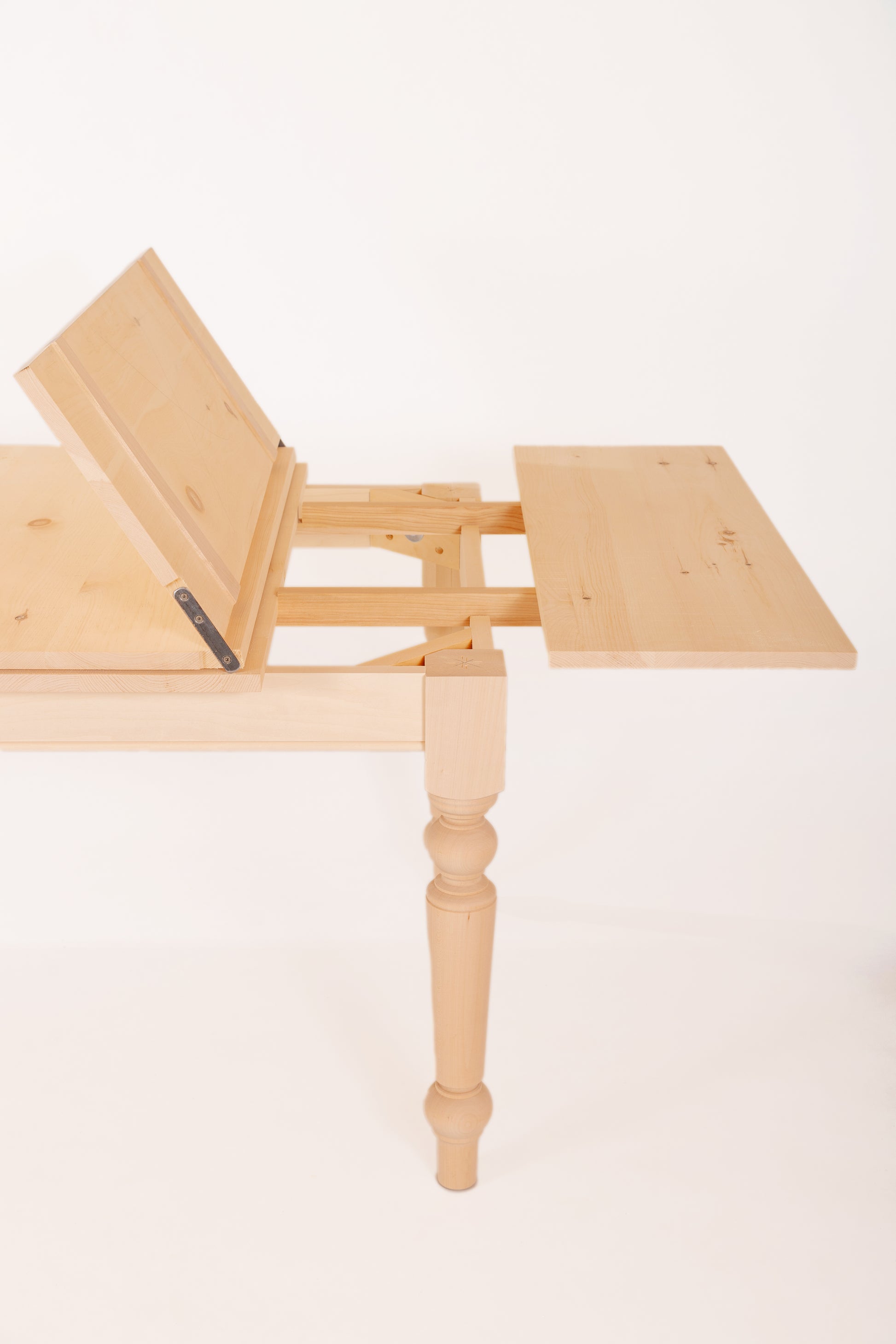 Ce modèle, avec ses rallonges discrètes et son plateau rabattable, était construite autrefois ainsi par nos ancêtres grâce à un savoir-faire traditionnel transmis de génération en génération. Pratique et solide, cette table porte en elle la mémoire des cuisines d’autrefois, où l’on recevait toujours avec le cœur.