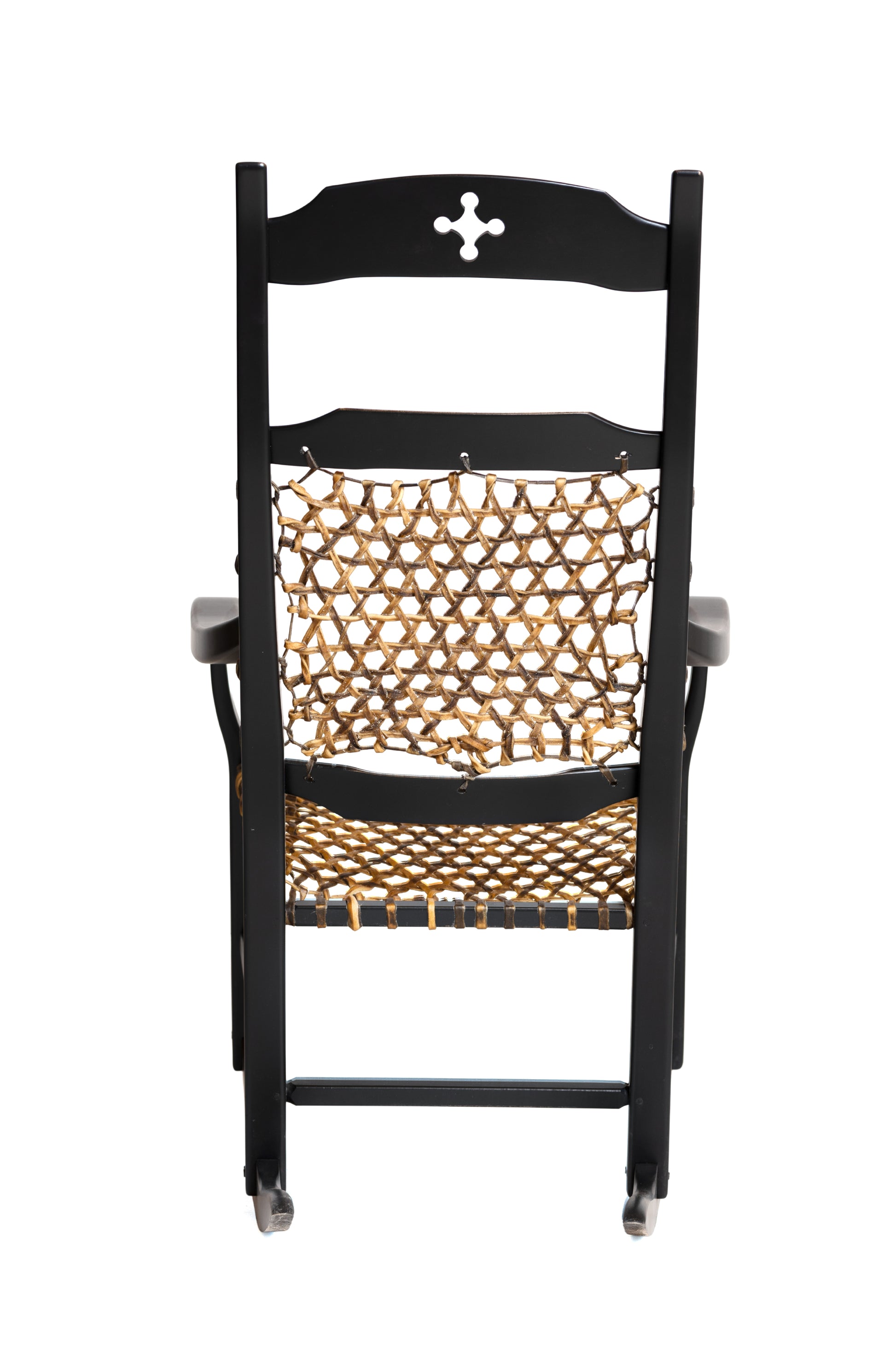 Évoquant les veillées tranquilles d’autrefois, La Paysanne - Berçante allie charme rustique et réconfort. Sa structure en érable massif lui confère une grande solidité et la babiche tressée apporte son charme d’antan.