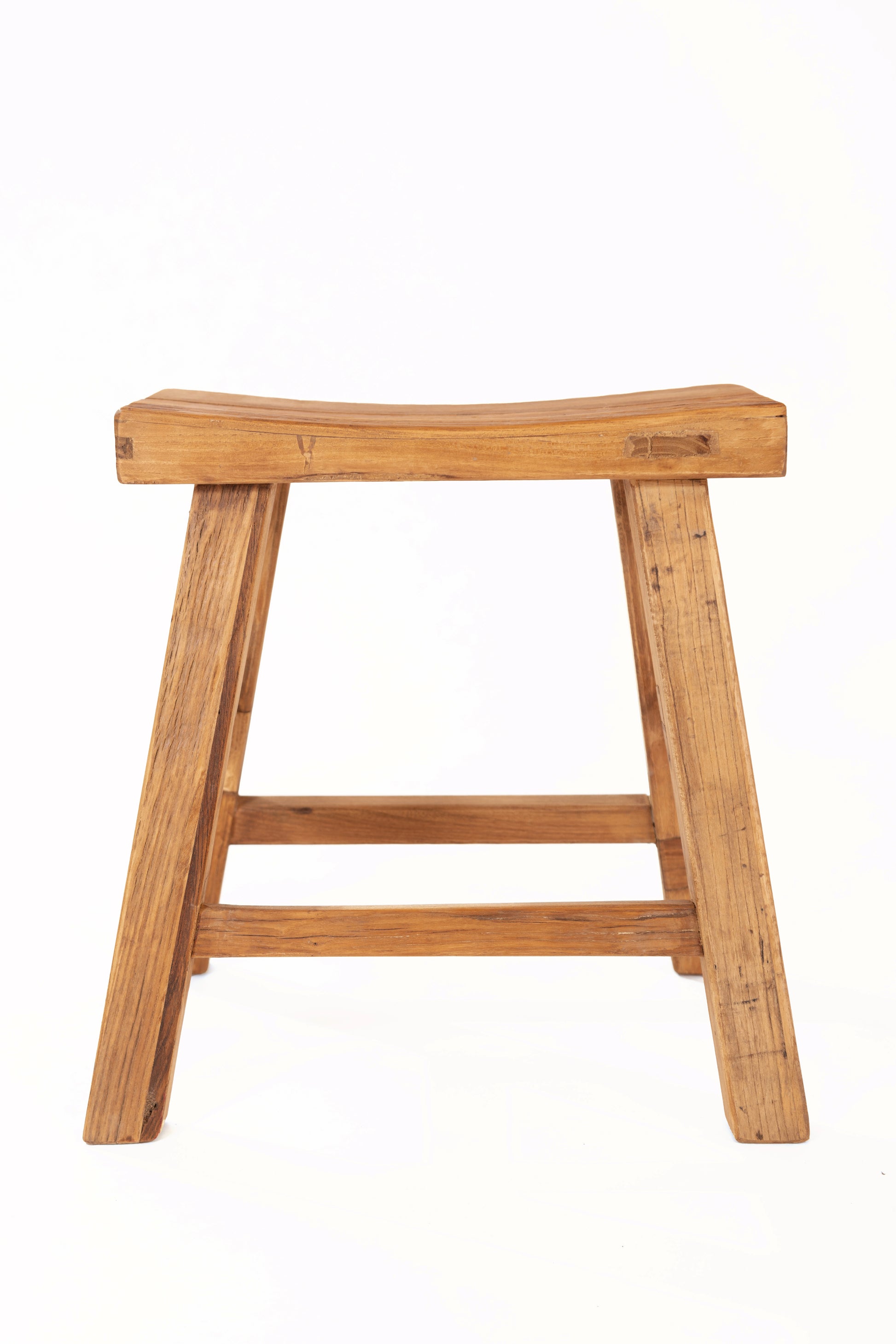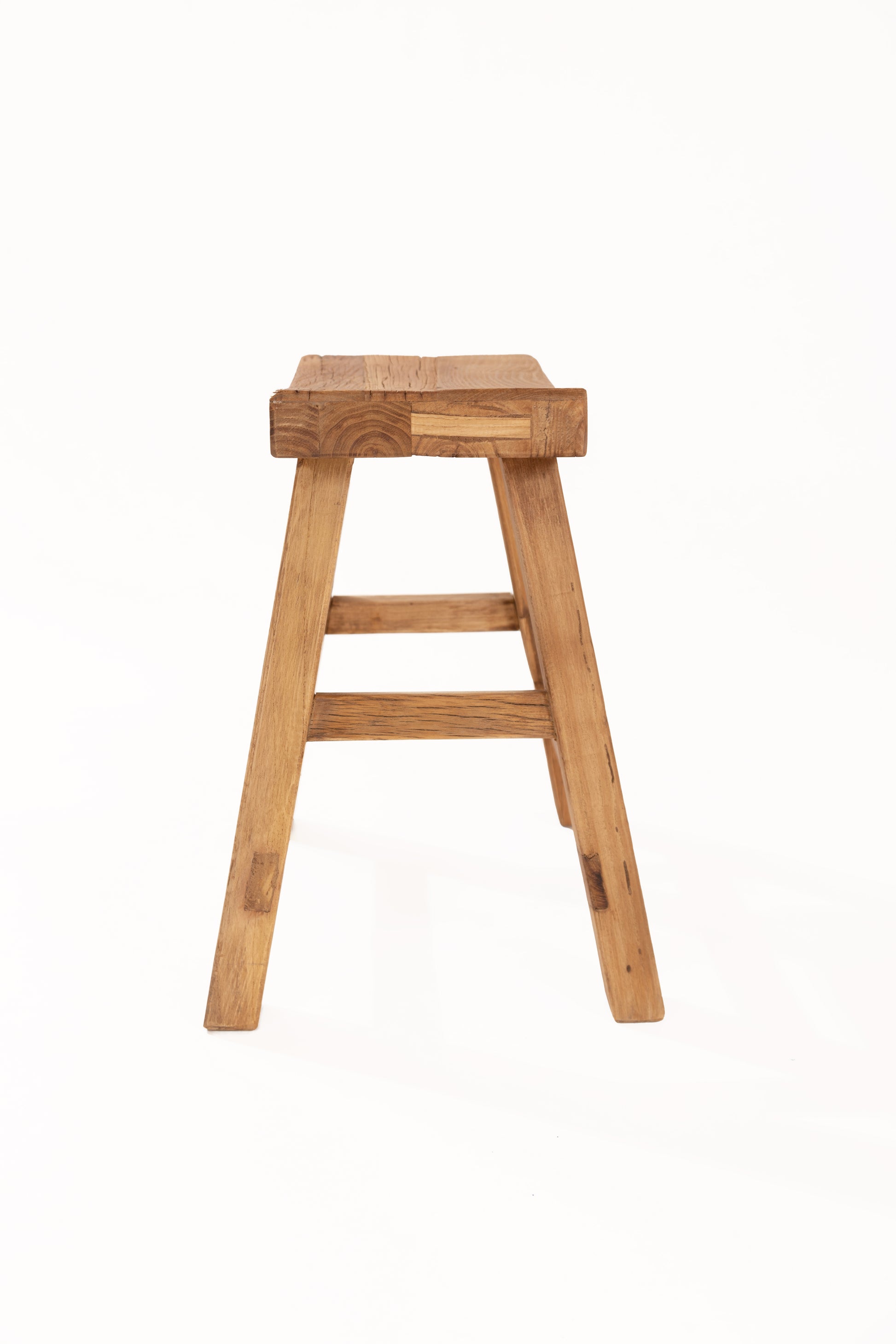 Tabouret décoratif en vieux bois recyclé. Celui-ci emmènera une touche d'ensoleillement dans votre salle de bain, salon ou cuisine.