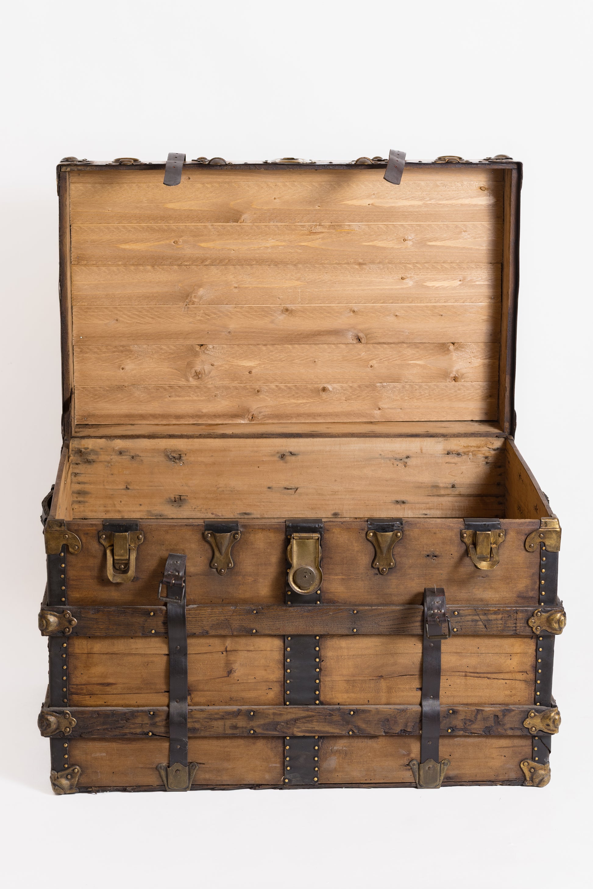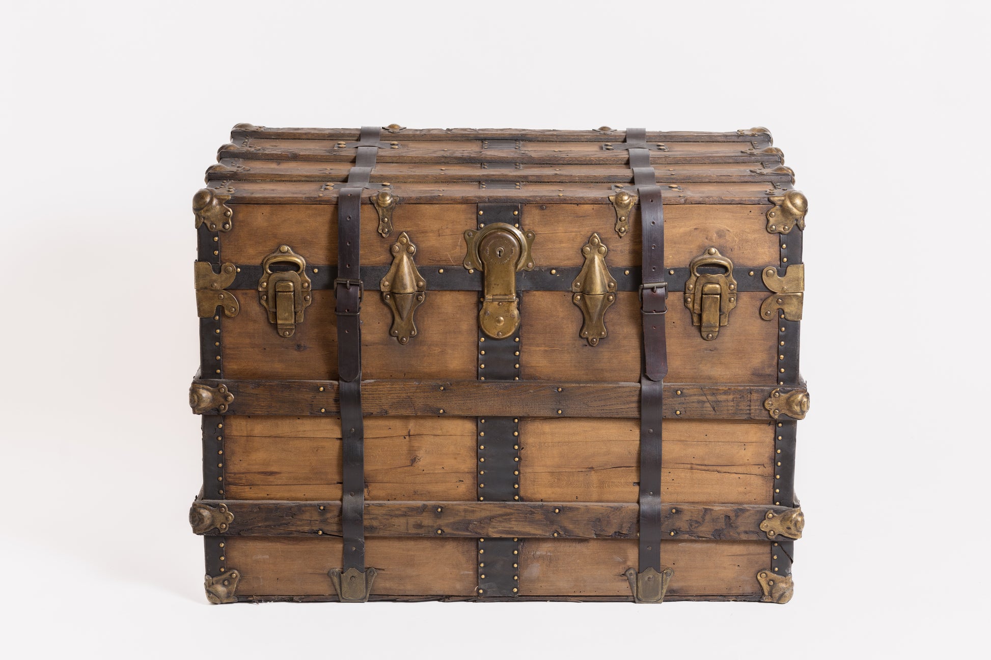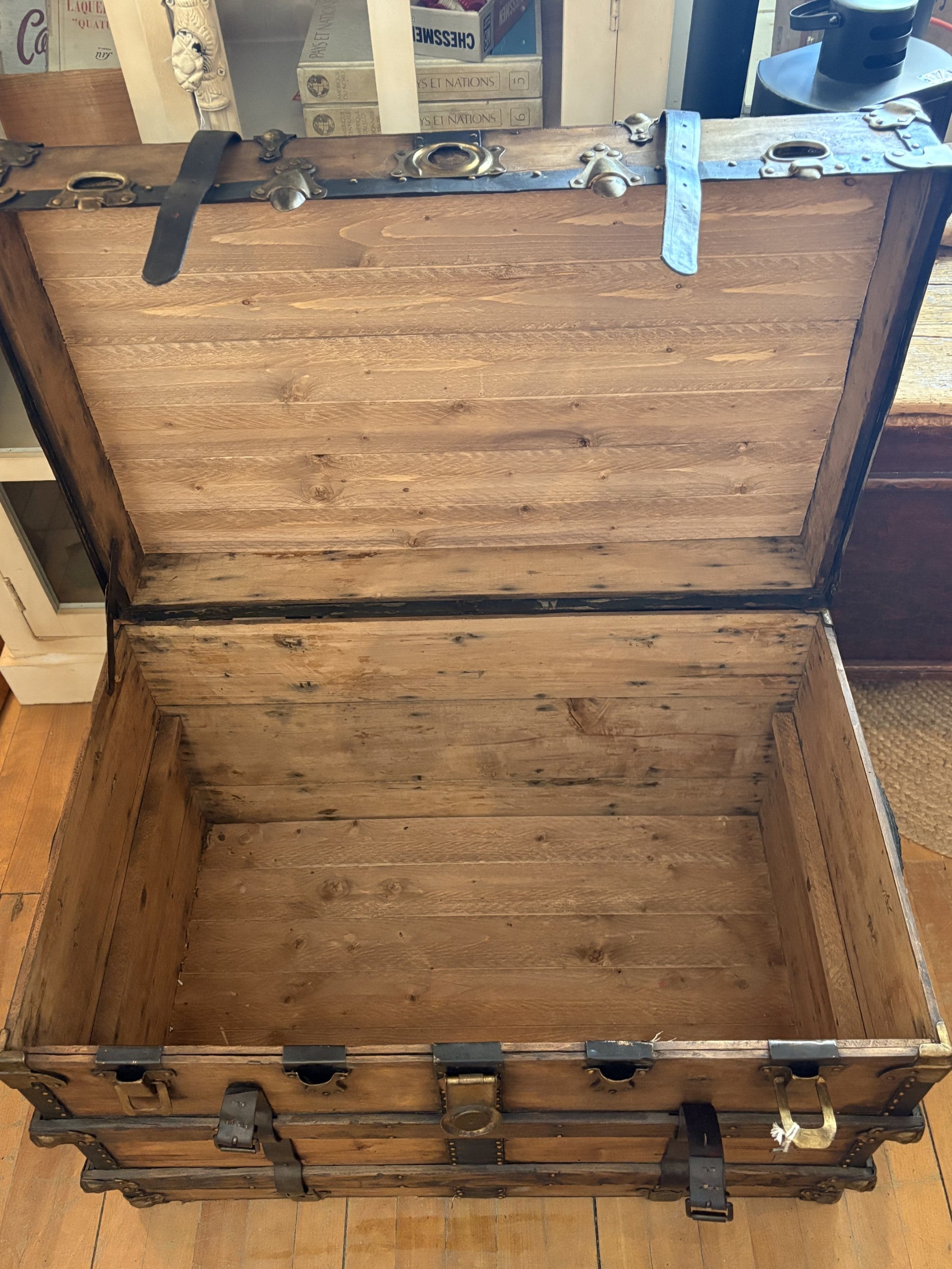 Vieille malle de transport en bois restaurée